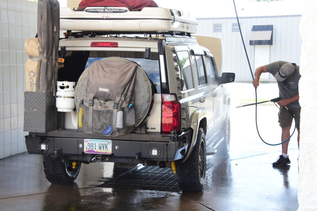 Due to the heavy load and constant pounding of the trail, Tinshanty’s rear coil springs were becoming increasingly fatigued and bottoming out. The Jeep Commander had recently undergone the major overhaul and the Old Man Emu rear coil springs selected just weren’t up to the task. As we were getting near Tulsa, the decision was made to leave the group early the next morning to try find a better solution. Perhaps some air bags. Google found Midwest Expedition Outfitters (MEO). We spoke to Freddie at the shop who said come on in and we’ll figure out the best solution. They’re overlanders just like us! We’ll be leaving for Tulsa when we break camp tomorrow morning. Fingers crossed.