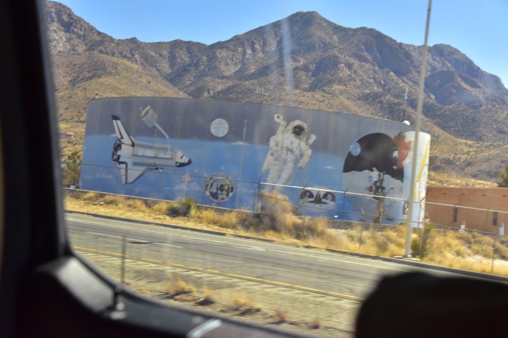 This was a huge monument. I’m not sure what it was, and I only captured some of the many horses. It was beautiful! Unfortunately we can’t always stop, turn around and easily go back. I’m pretty quick with the camera. I wish I could have captured the whole display. Those horses are all life sized. there’s Smokey…. You should have learned the story in about the third grade. “Remember, only YOU can prevent Forest fires”The name in the door is “Camelot Storage” 🤔Look what’s across the street from our RV Park in Alamogordo. It’s that Ahhhh-mazing giant pistachio!