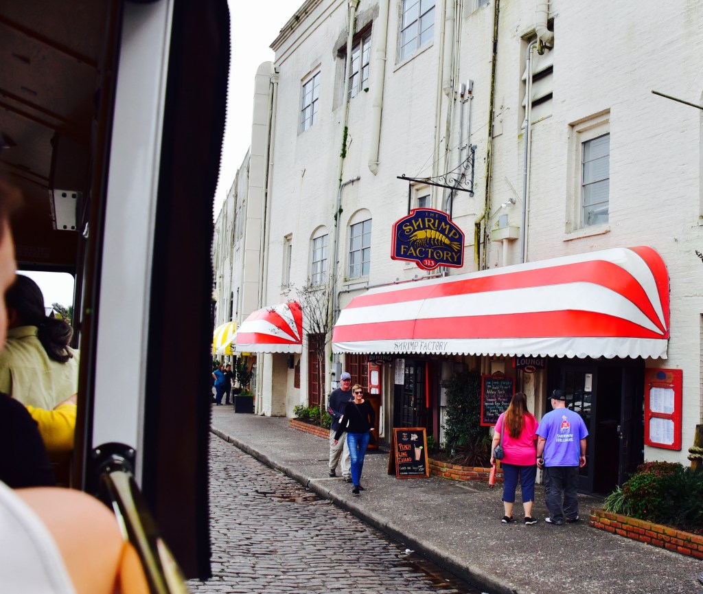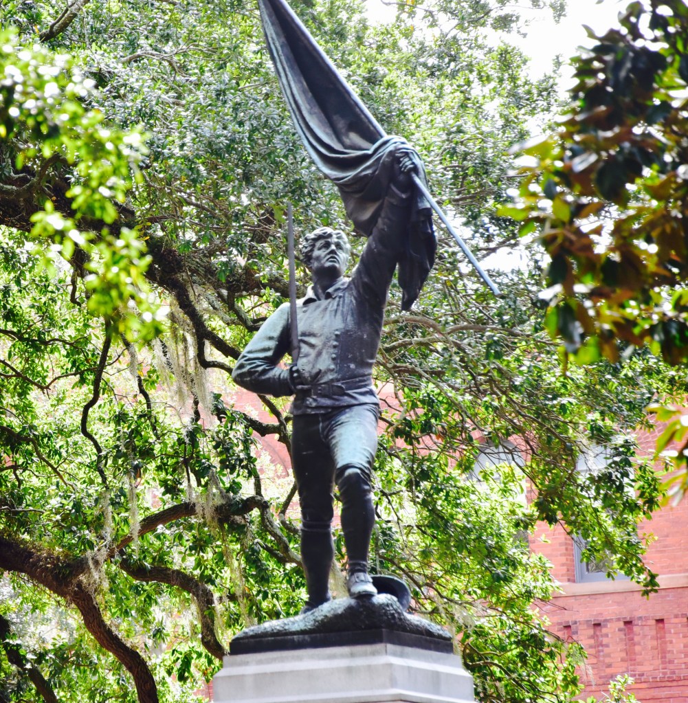 The city is laid out around a series of town squares or parks. Each square is named after a famous person from the past. Most have some kind of statue or memorial in honor of its namesake. That is why all of the pictures you’ll see of downtown Savannah are lined with trees. I’m sure the tree canopies are much more lush and green in the spring and summer, but it is still very beautiful this time of year.