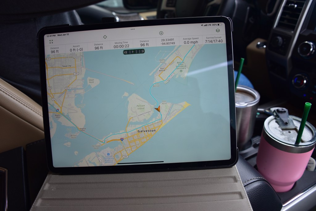 We were checking the maps, trying to determine how to visit Galveston without too much back tracking and yet another pass around Houston. Well, what do you know? There’s a ferry! And it’s free!!