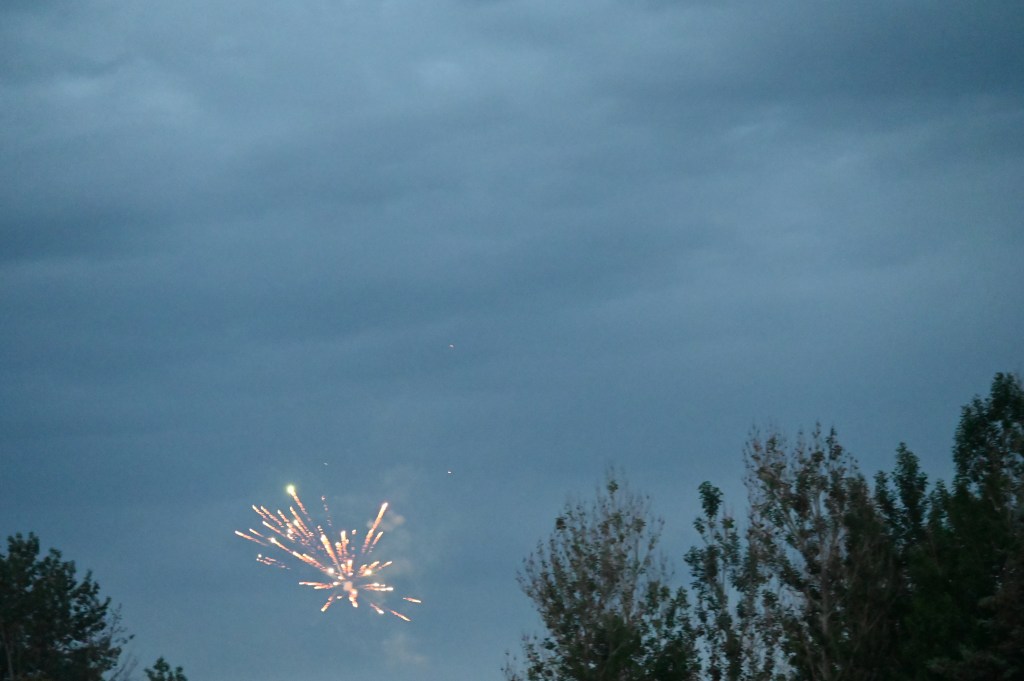 We could see the fireworks from our little campsite. Nice! Nice until they went on for about 7 hours straight. No kidding. They started going off long before dusk, and really ramped up after dark and didn’t let up AT ALL till after 1 o’clock in the morning.