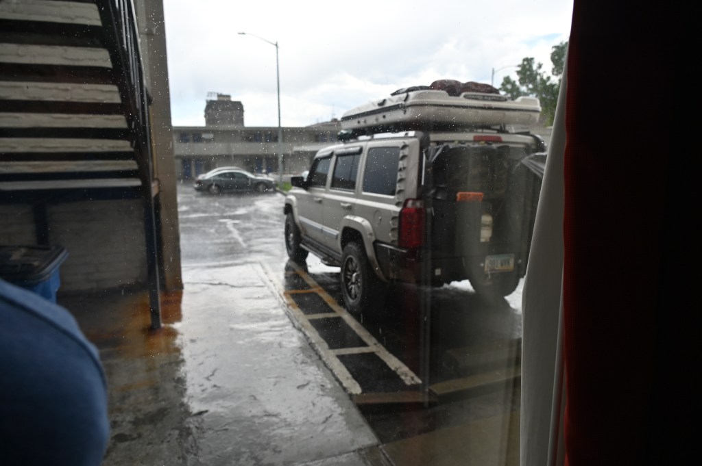 Trying to beat the rain. Sometimes you just have to hang out in the car…..