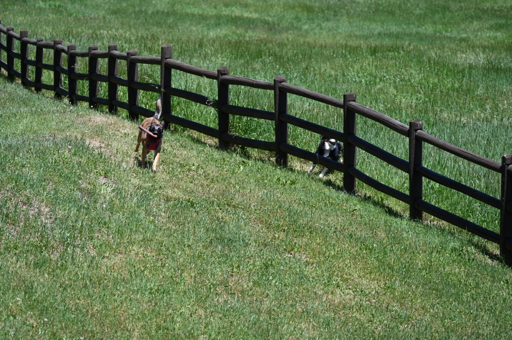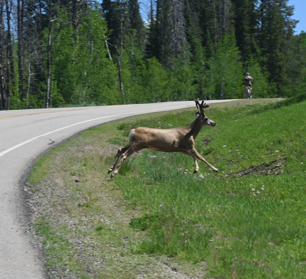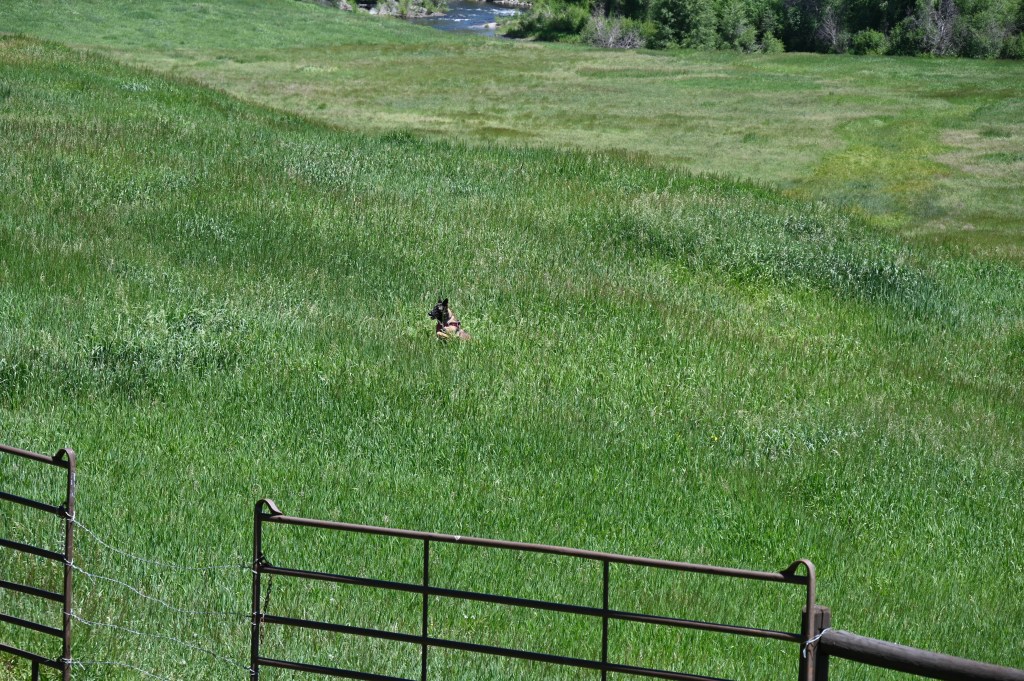 We stopped next to the “Three Forks” fence to run the dogs and immediately attracted the attention of the ranch security. The girls were trespassing, but no harm done.
