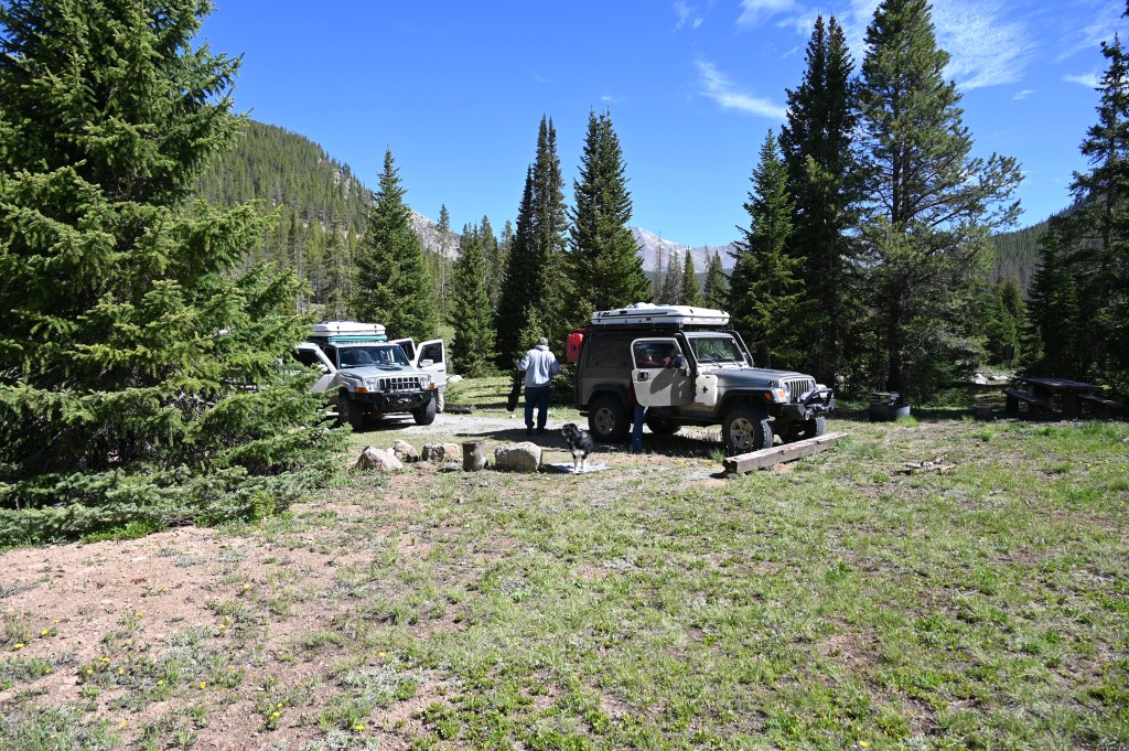 We had to go quite a ways north and west to pick back up on the actual CDT trail at about Camp Rock Gulch (??). This is a little confusing if you’re trying to follow the maps because we went further north to Ponch Springs and actually backtracked on the Kevin.gps tracks and found a beautiful state campground, Monarch Mountain near the Ski Resort. We had the place practically to ourselves. It was great to be able to spread out and let our goofy dogs run and play.