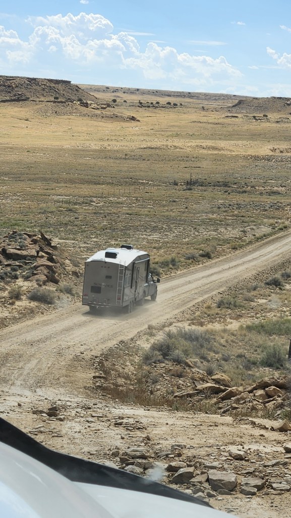 Although we had a tentative route planned, we let my Passport Book guide us 50 to 100 miles off course at times. There was a lot of backtracking which is usually against the rules. We saw so many things that we never would have. And we were on some sketchy roads that we never would have chosen. It was all part of the adventure and were in no hurry. And we were still having fun! Until Chaco…..
