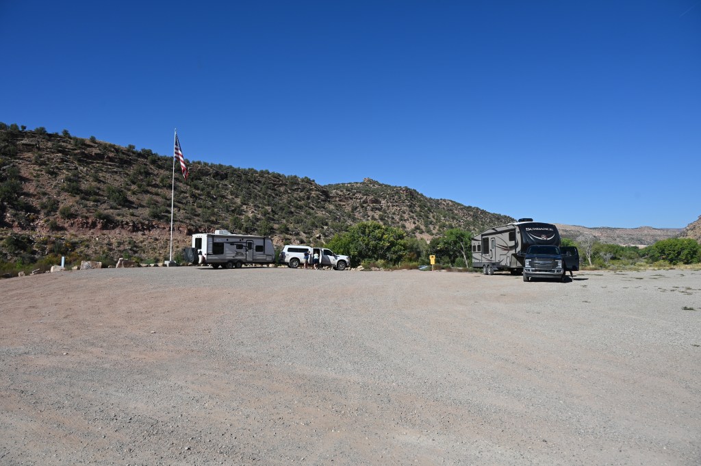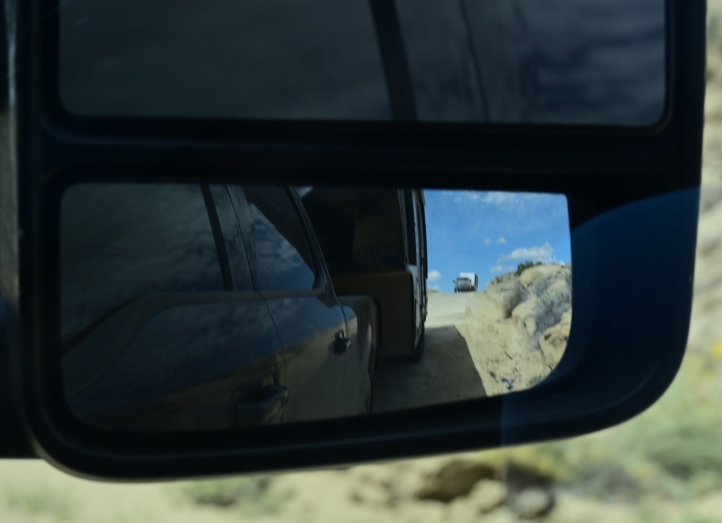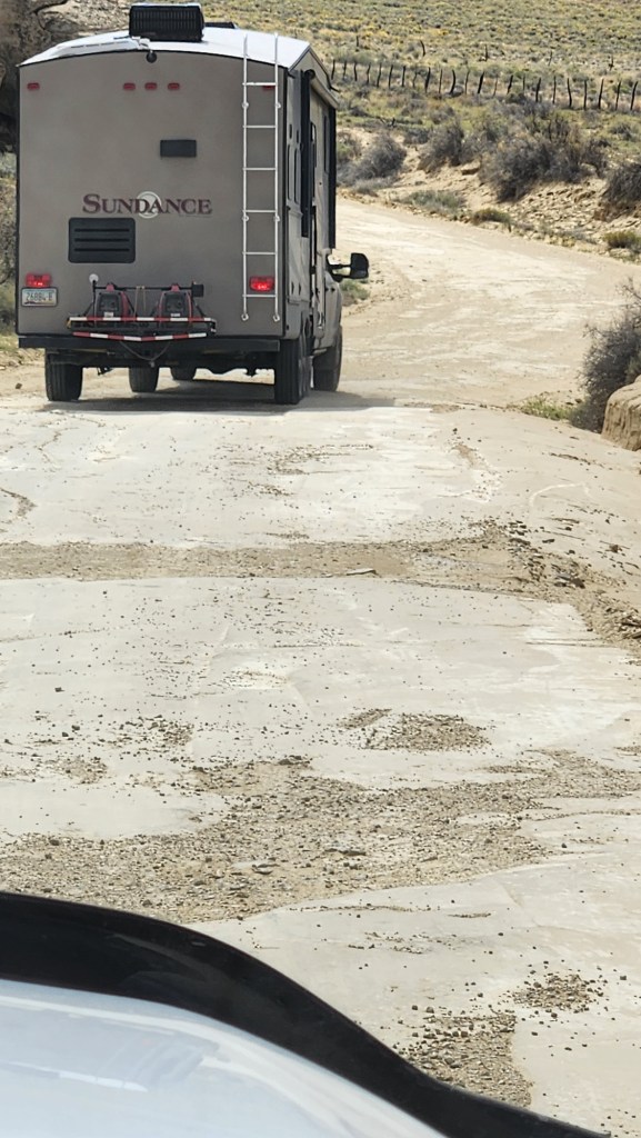 Nothing had warned us that the road coming in from the north was washboard gravel. But then the County maintained portion ended and we were on unmaintained Reservation land with absolutely no way to turn these rigs around.