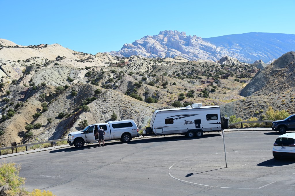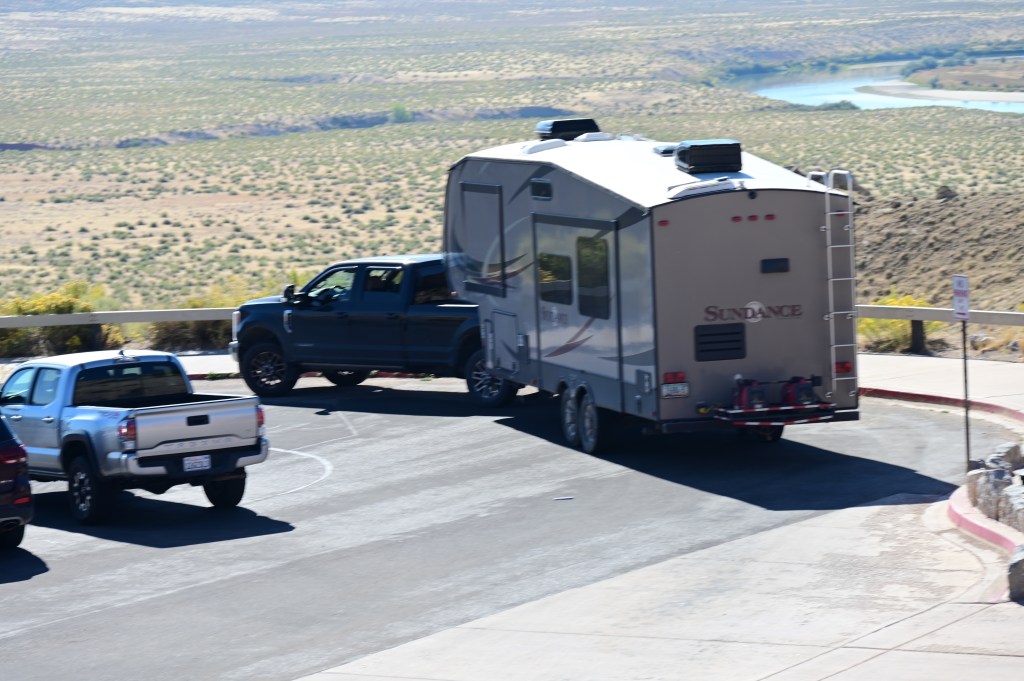 The ranger at the entry said sure, we could drag our rigs through the 26 mile scenic drive. We’d be fine if we stay in our lane. Too late to turn back now.