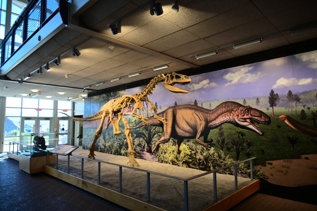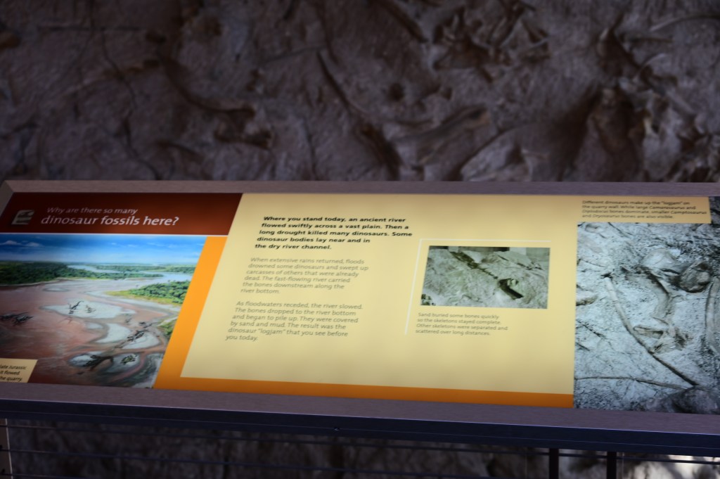 The Quarry Exhibit Hall is a large building hidden among the colorful rocks of the desert, where a collection of 1,500 dinosaur fossils dating back about 150 million years is displayed.