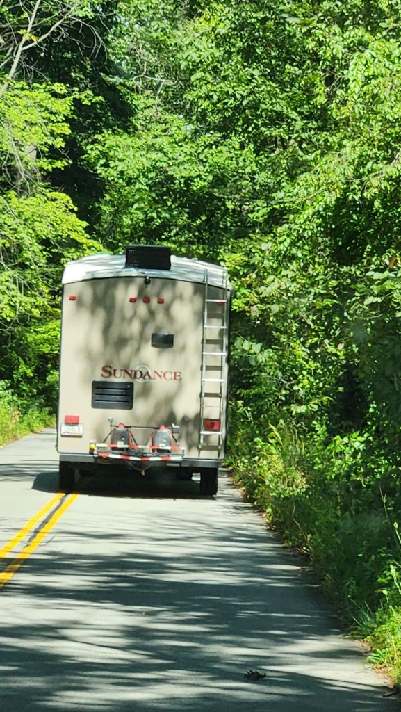 Sadly, the Indiana Dunes are not favorable to RV travelers. This is obviously a hiking or biking park with miles of beach and trails. Even driving in or through it was a real challenge for us dragging our trailers on winding skinny roads through the trees.