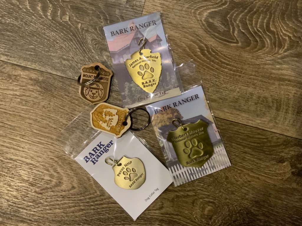 Dogs posing for their National Park Bark Ranger Rewards. Yep, that’s a thing.