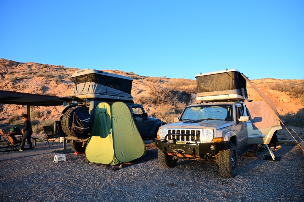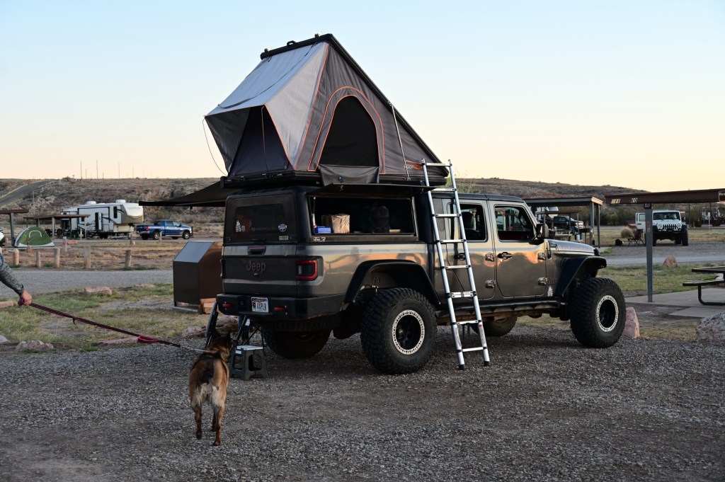 The wind break turned out to be a wind tunnel. What a night! That was the strongest wind we’ve ever experienced in the roof top tent. But we all survived and the campsite was beautiful. And the price was right.