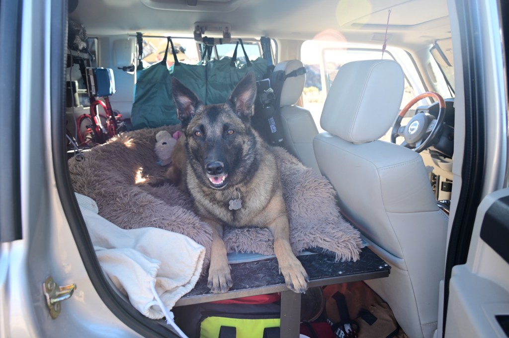 At the group site which was a large sort of level parking lot. You can’t beat the views or the camp fees. $3.50 per vehicle?Pepper Easley, a very good girl!