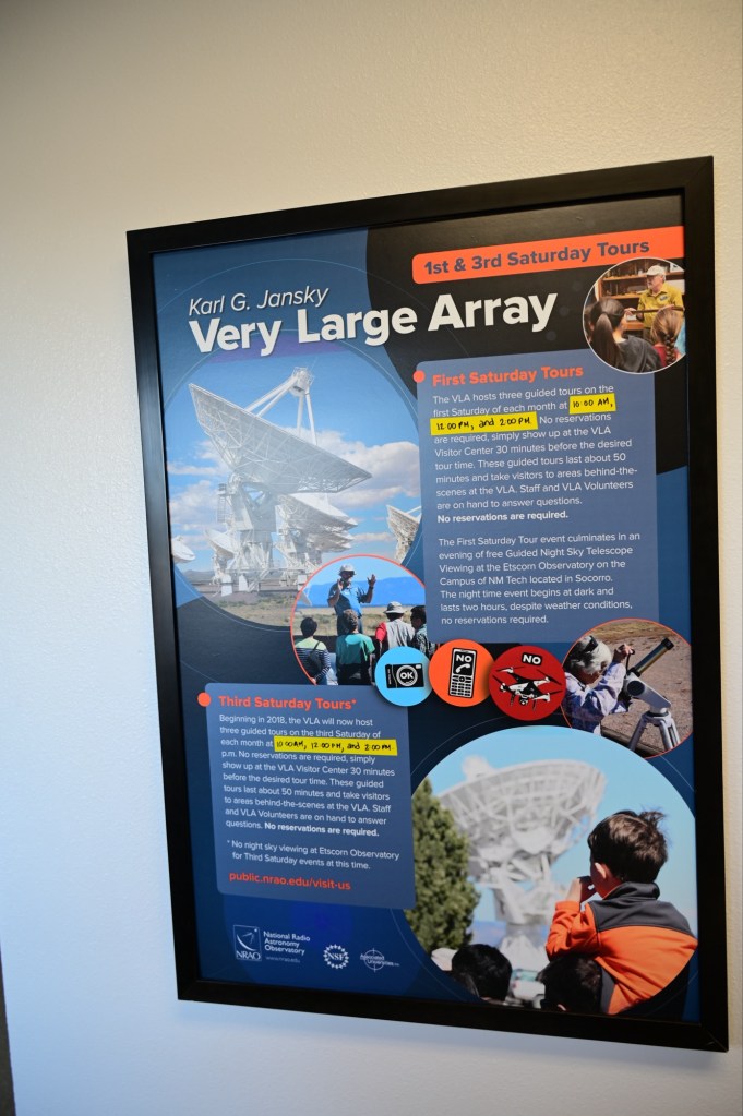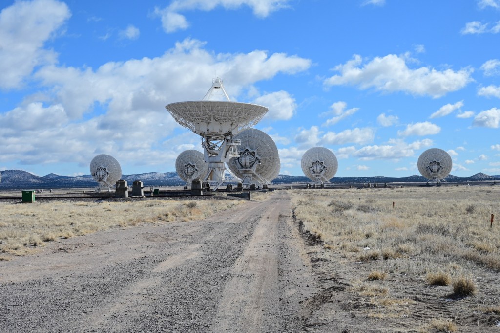 The Very Large Array (VLA) is comprised of 27 radio telescopes in a “Y” pattern spread across the plains of San Agustin 50 miles west of Socorro. The VLA has been used by more astronomers and has been mentioned in more scientific papers than any other radio telescope in the world. Each antenna is an 82-foot diameter dish that weighs 230 tons.