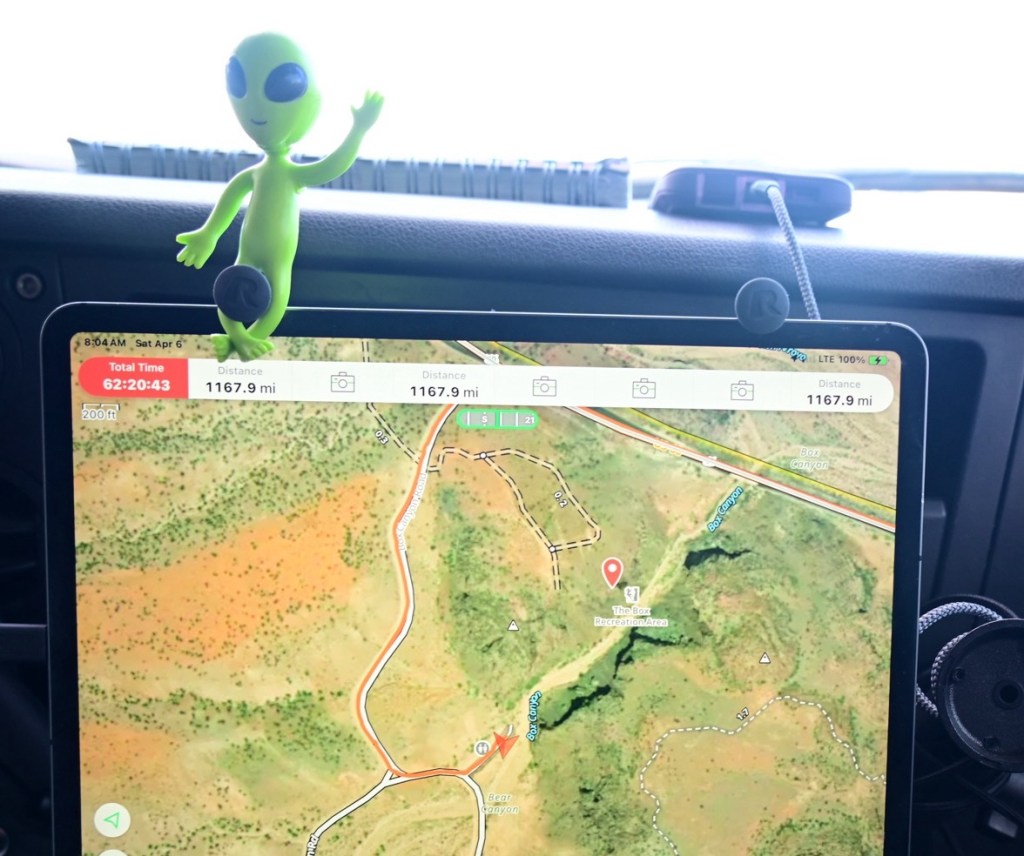 The plan was to follow part of the Butterfield Stage Coach Route (AZ & NM), highlighting the Civil War battle sites in New Mexico, and Roswell (site of 1st known crash site of a “flying saucer”). And more! Note that a big focus was the chance to go to the Trinity site which was in the past only opened to the public one day per year with reservations required. We weren’t even able to make reservations as the site has recently been closed to the public.