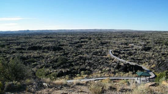 Valley of Fires recreation area is located immediately adjacent to the Malpais Lava Flow. Approximately 5,000 years ago, Little Black Peak erupted and flowed 44 miles into the Tularosa Basin, filling the basin with molten rock. The resulting lava flow is four to six miles wide, 160 feet thick and covers 125 square miles. The lava flow is considered to be one of the youngest lava flows in the continental United States.