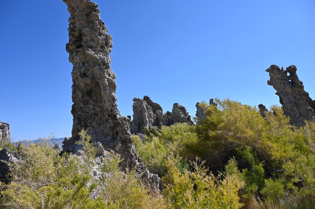 The reserve was established to preserve the spectacular “tufa towers,” calcium-carbonate spires and knobs formed by interaction of freshwater springs and alkaline lake water. It also protects the lake surface itself as well as the wetlands and other sensitive habitat for the 1 – 2 million birds that feed and rest at Mono Lake each year.