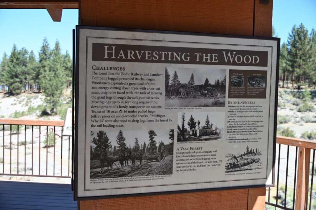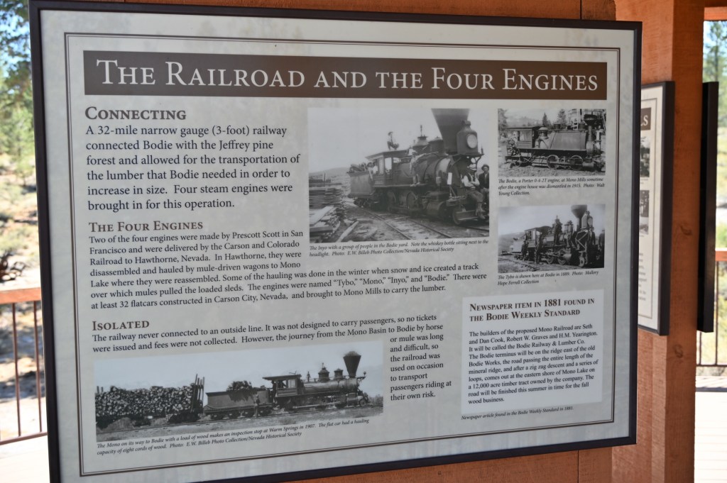 Huddled in the sagebrush-covered mountain, 30 miles north of Mono Lake, was the brawling, ‘boisterous, gold mining town of Bodie, California. With a soaring population of nearly 12,000, the town’s need for lumber to build homes, timber for shoring mines, and wood for fuel was tremendous. Teamsters could not begin to meet the enormous appetite Bodie had for consuming wood. The stage was set for the obvious answer to the problem – build a railroad to the large timber stands south of Mono Lake.