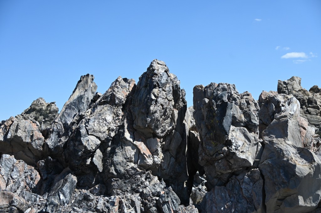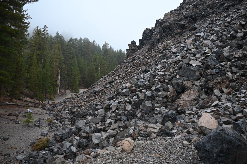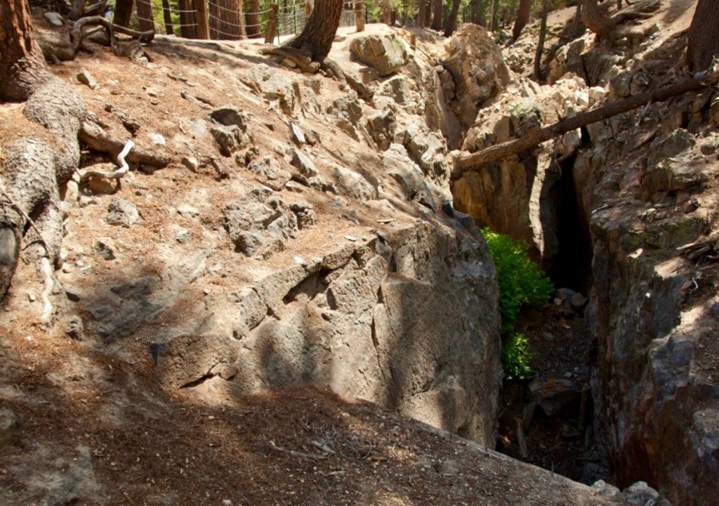 The Earthquake Fault is actually an impressive fissure in the underlying rock, as narrow as 10 feet and as deep as 60 feet, running north-south across Hwy. 203 toward Earthquake Dome through some of the oldest trees in the region. Look closely at the edges of the “fault,” and you’ll see that the sides of the rock – now 6 to 10 feet apart – fit together perfectly. The fissure opened around 550 to 650 years ago, during a time of intense volcanic activity that included steam blasts at Inyo Craters and eruptions at Deadman, Obsidian, and Glass Creek domes. Early pioneers collected ice here in summertime to make ice cream.