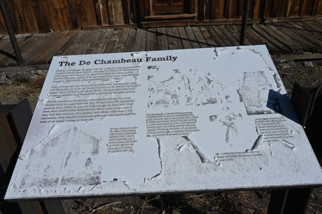 The Dechambeau Ranch is one of a number of ranches that served the numerous mining communities around Mono Lake from the late 19th century into the early decades of the 20th century. When most of the ore had been recovered and the miners had moved on, the ranches slowly withered.