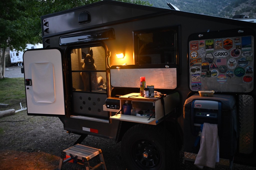 We had electrical hookups here, but unfortunately, the Mono Lake RV Park had sewage drainage issues the entire 7 nights and no flush toilets, showers or laundry room available. We do have a cassette toilet in the trailer and set up our pop up shower tent for the week. Going off grid is no problem, it’s just annoying when also paying premium for an RV spot. No discount or refund for the inconvenience……